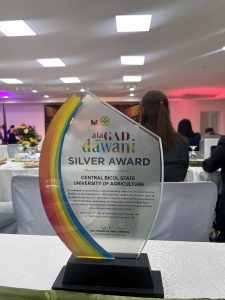 The Central Bicol State University of Agriculture (CBSUA) shone with pride as it clinched the Silver Award in the CY 2025 Gender and Development (GAD) Awards conferred by the Bicol Regional Gender and Development Committee (RGADC). The recognition was announced during the 53rd RDC Week Celebration’s AlaGAD nin Dawani Awarding Ceremony held on September 30, 2025, at the RDC Hall, DEPDev Region 5, Legazpi City.