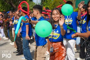 Signalling the commencement of the festivities in the University was the conduct of the intra-university parade followed by the ribbon-cutting ceremony of the art exhibit in the Administration Building. After which, a Zumba dance led by the faculty and staff of CAS took place. Students who are taking the GEC8 course are the participants in these opening programme activities.