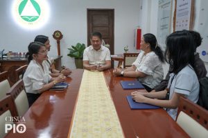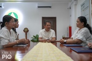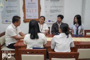 Ms. Shien P. Agreda and Mr. John Carl B. Labanon, both 3rd-year students, studied at the School of Life and Bioresource Sciences during the Fall Semester (October 2025โFebruary 2026). During their courtesy visit to University President, Dr. Alberto N. Naperi, they shared their overall experience of the program. Dr. Naperi advised the two, through the IRO, to conduct an echoing about the program across the campuses of CBSUA.