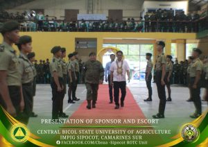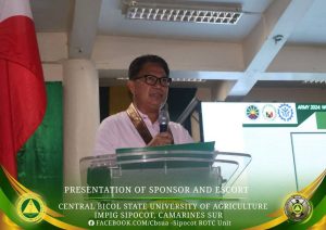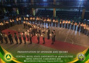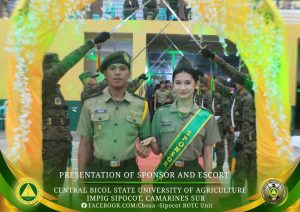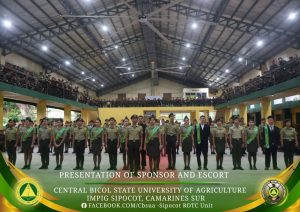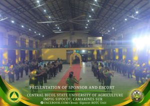 The Central Bicol State University of Agriculture–Sipocot Campus, through the National Service Training Program – Reserve Officer’s Training Corps (NSTP-ROTC) and the Department of Military Science and Tactics (DMST), successfully conducted the traditional Presentation of Sponsors and Escorts on December 6, 2025, at the CBSUA Cultural Hall. The event celebrated and honored the sponsors and escorts of cadet officers who exemplify discipline, service, and moral integrity.